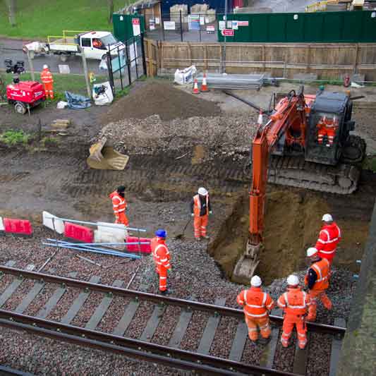 Further up the line a big hole has been dug below the Eynsham Drive bridge. (Photo 1 left.)