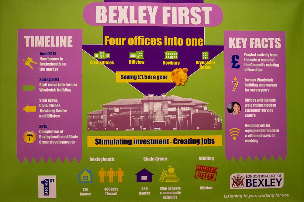 The poster claims that the new HQ will save the taxpayer £1·5 million a year.