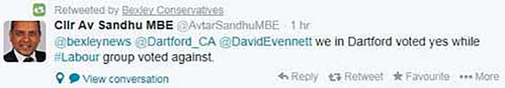 of a comment by Dartford Conservative councillor Avtar Sandhu. His