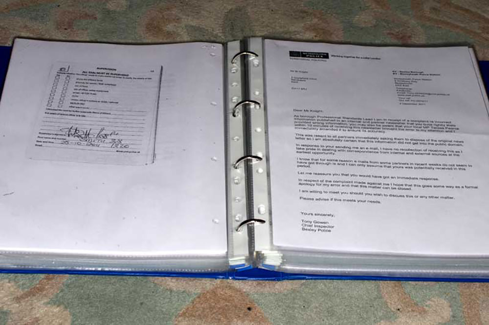a collection of letters and emails bounced between me and the police (Bexley council