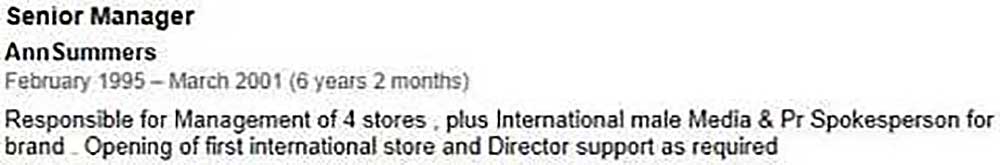 of Ann Summers. That may have been a fun job if he doesn’t easily blush.