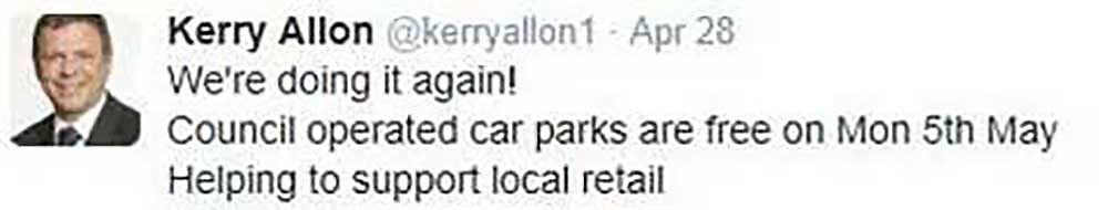 generosity towards the electorate. Its car parks would be free on the May Day holiday, today.