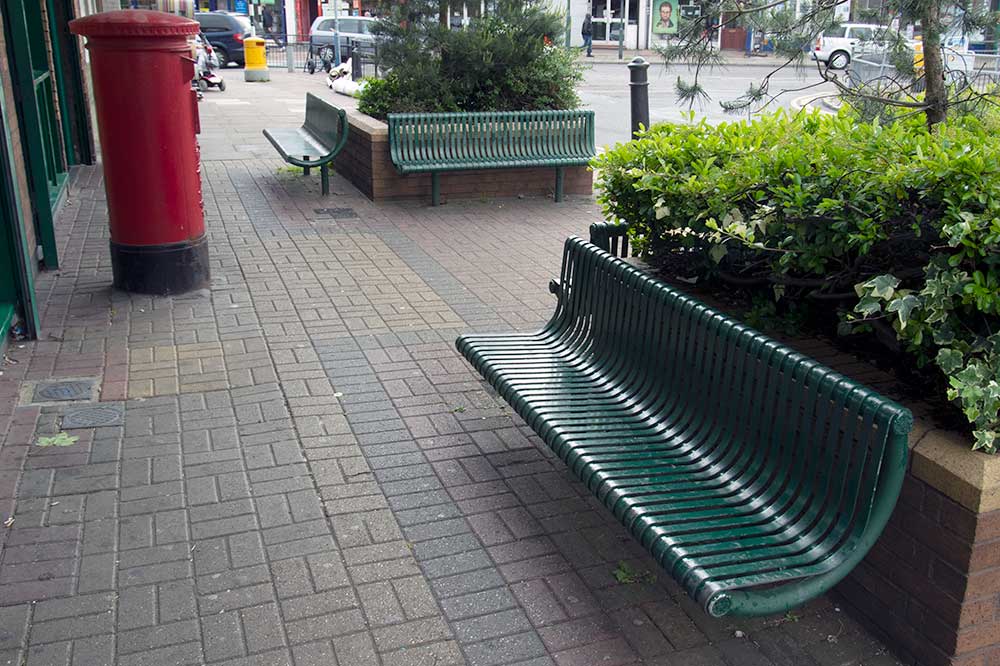 New paving, new seating, railings and banners hanging from lamp posts are all
