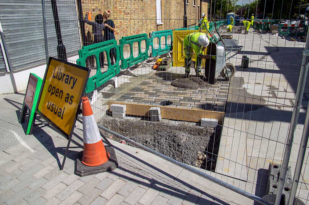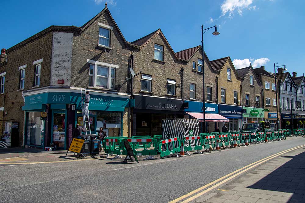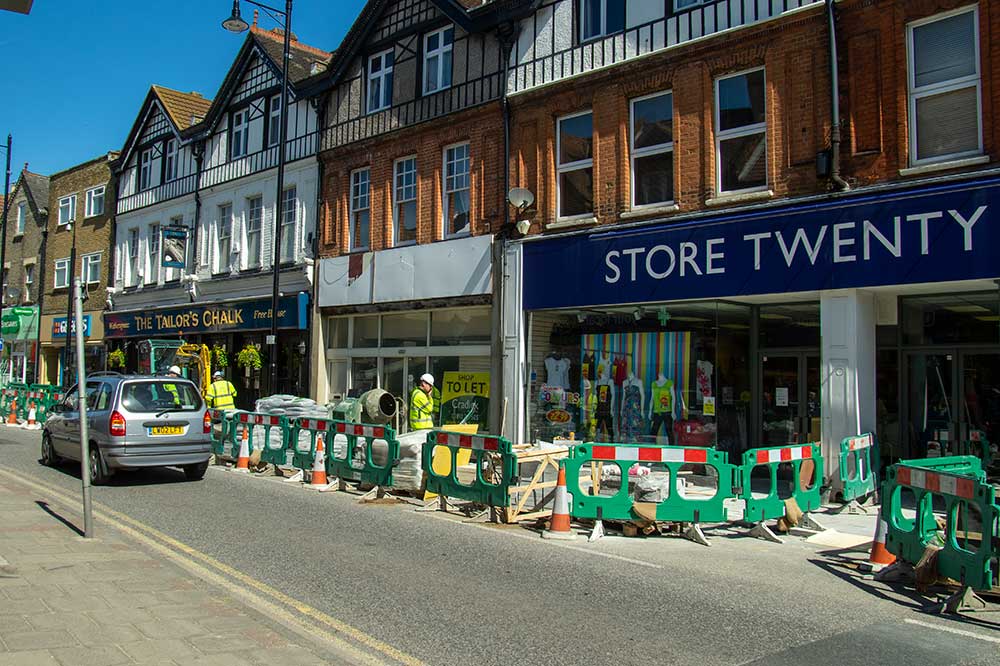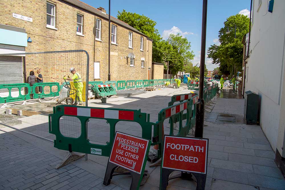 Most of the shop fronts are now in, the work is more or less complete. There are some big tracts