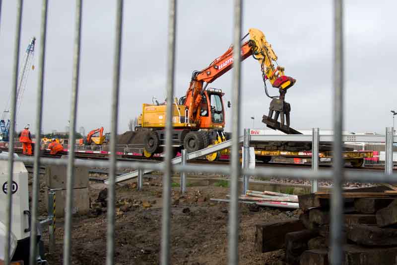 The tracked crane was shifting sleepers from one heap I could not see to another