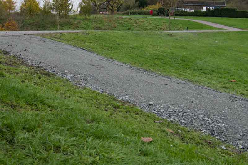 soft and spongy. Before it rejoins the old path it has a nasty inverse camber