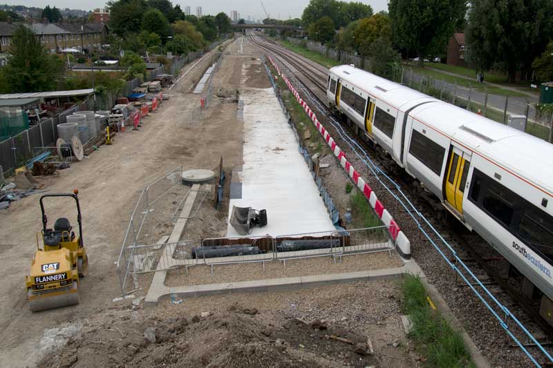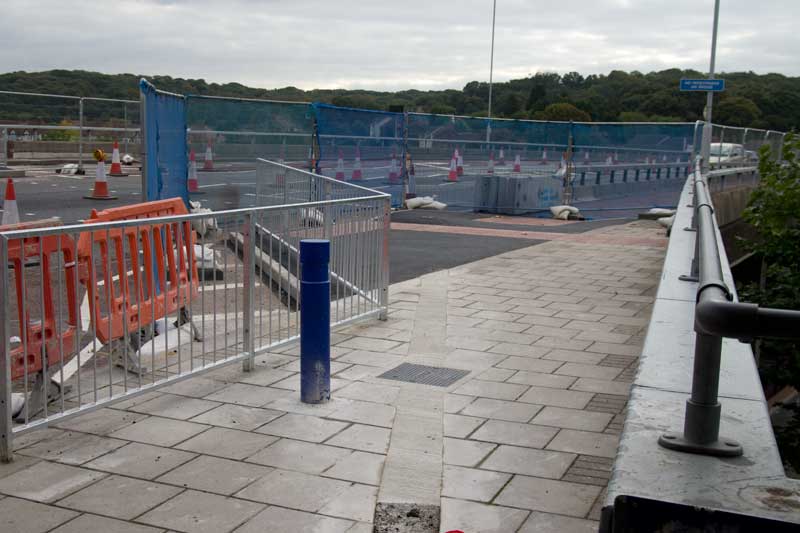 Up on the Harrow Manorway viaduct the pedestrian crossing is nearing completion.