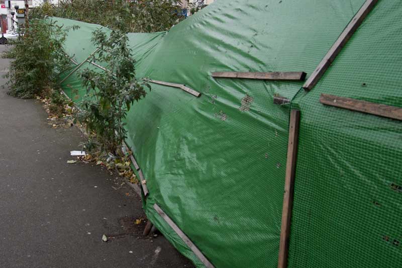 before the May elections the fence around the site of the demolished Harrow Inn was