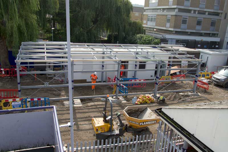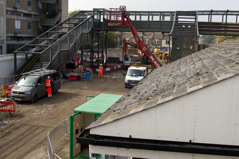 At Abbey Wood station there has been progress on both the new booking office and the footbridge.