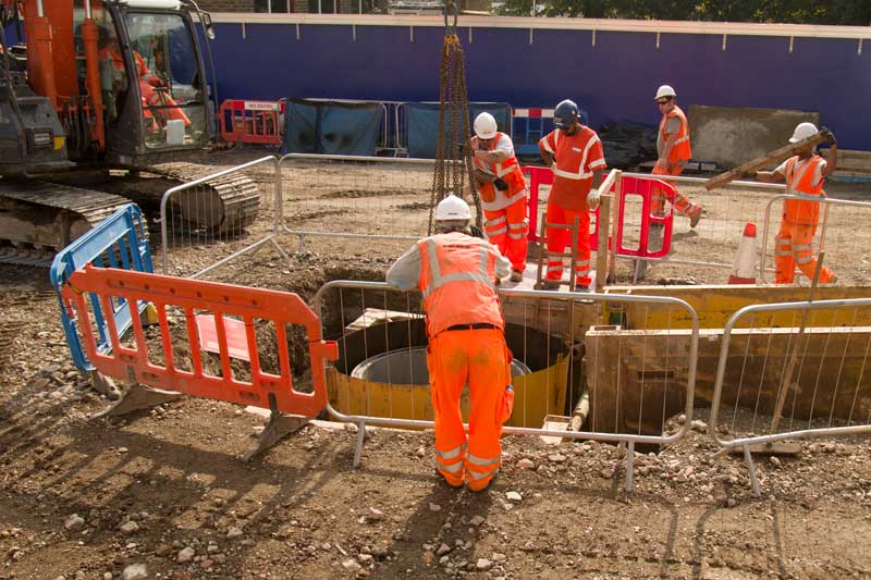 Nearby yet more large concrete pipes were being manoeuvred into another deep