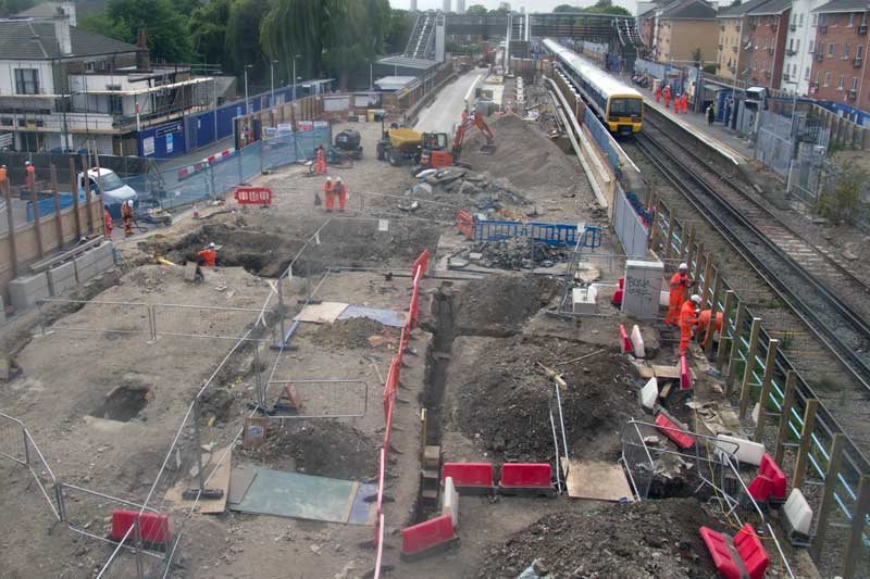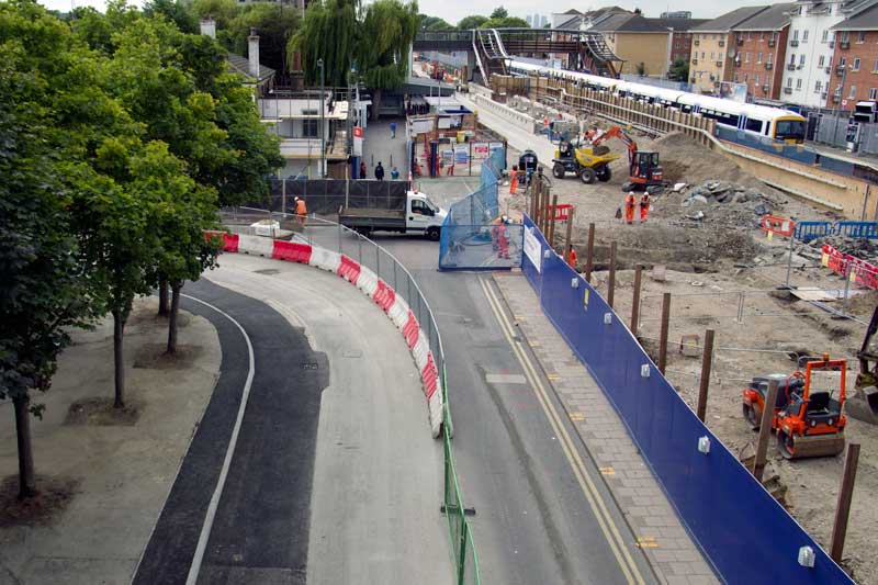 Gayton Road is rearranged and the station site is progressing. As may be seen, the platforms are going to be very wide. The