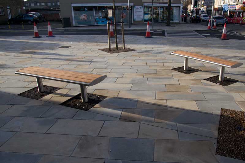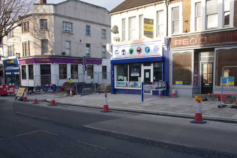 In Bexleyheath Broadway the new footpaths are very nearly complete and
