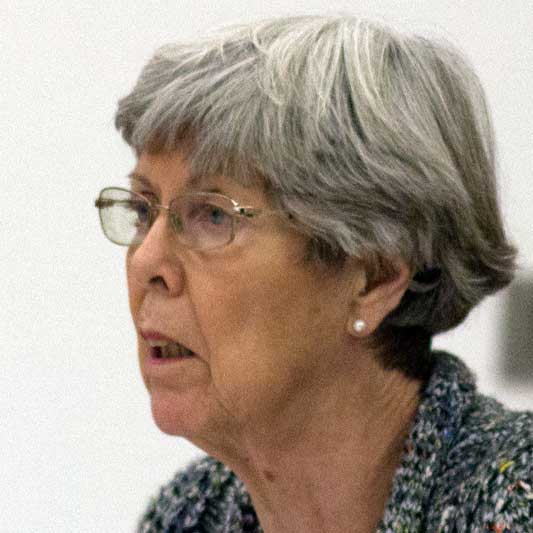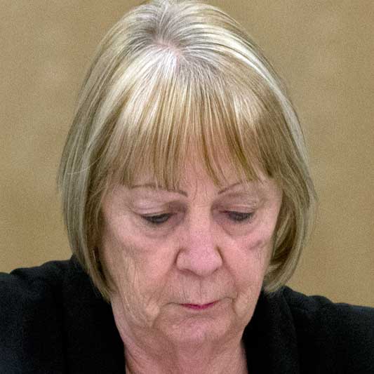 Councillor Slaughter appears to have her arms folded. Councillor Aileen Beckwith sits on her hands.