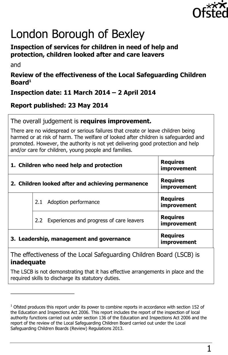 • Progress since 2012 when Bexley was judged inadequate has been very slow