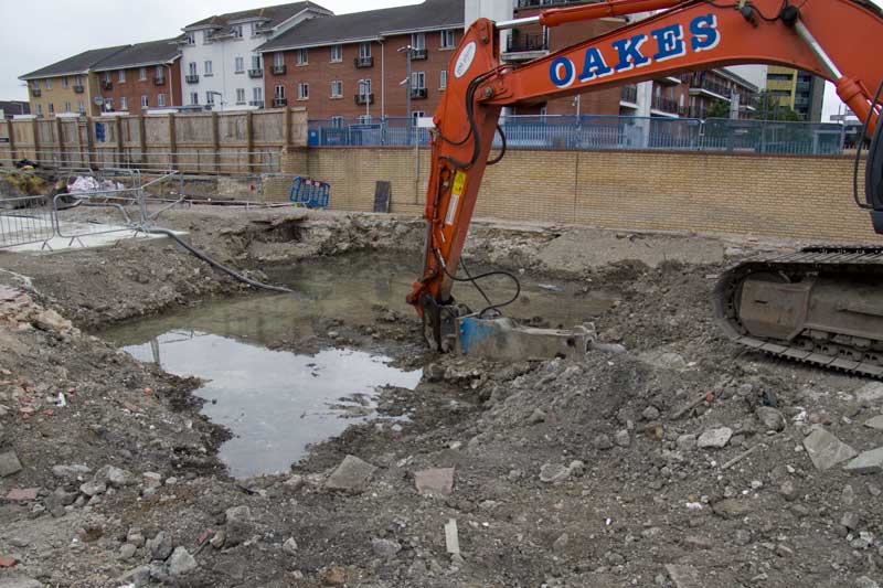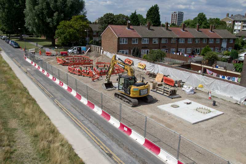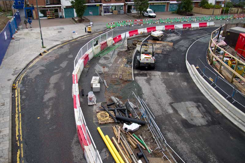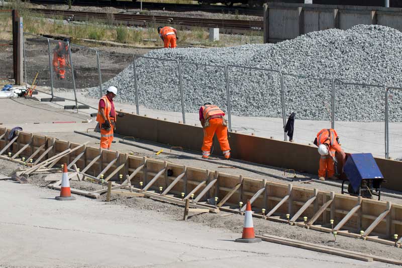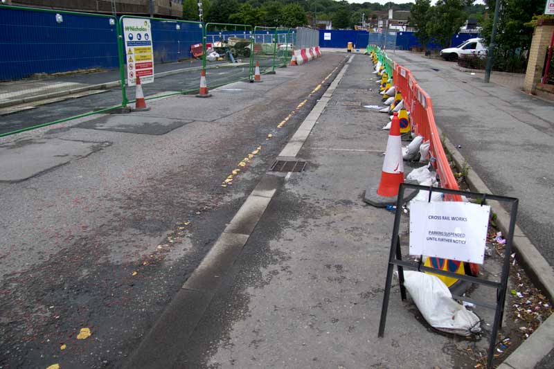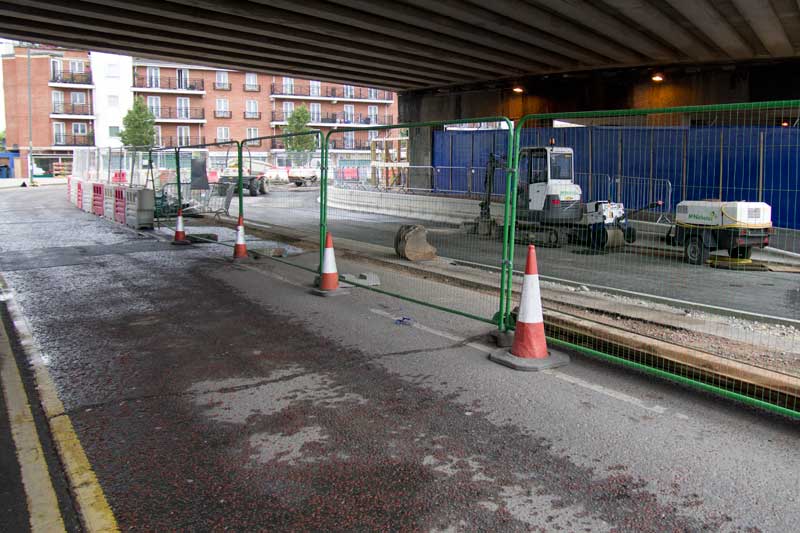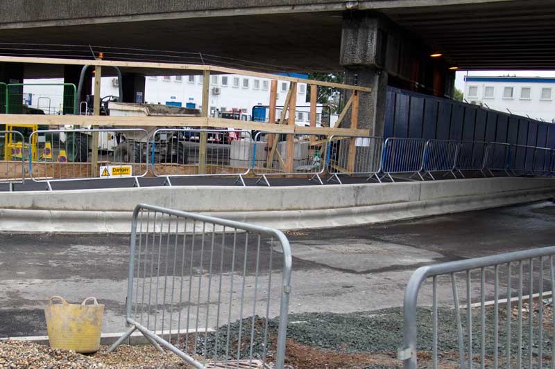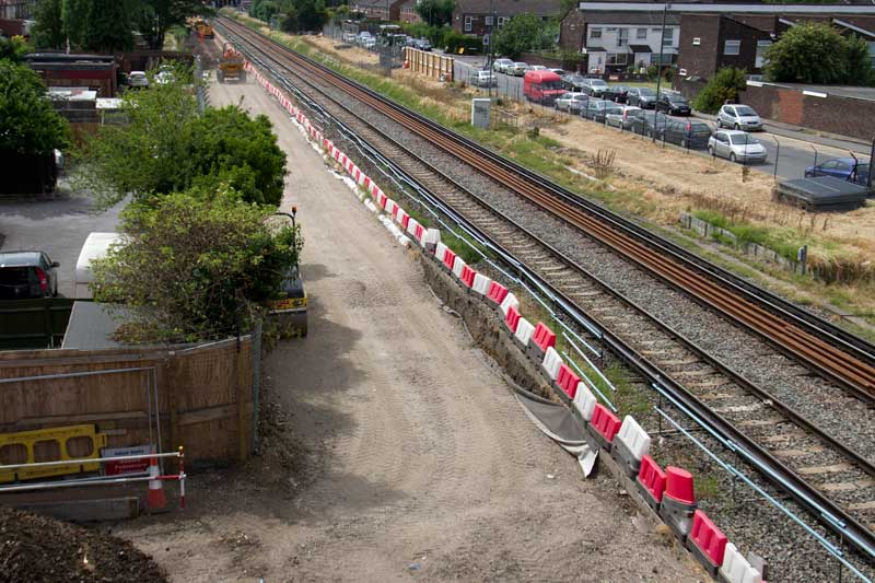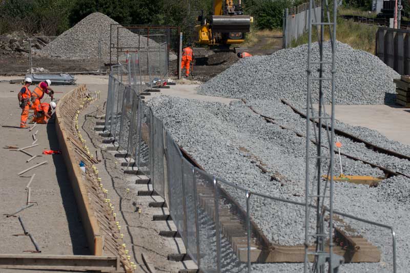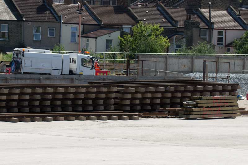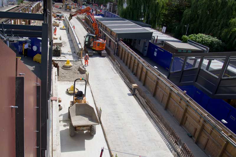 The reinforced concrete track bed now extends almost to the western end of the existing platforms and a path has been cleared to just beyond the Lesnes Abbey footbridge to the east.