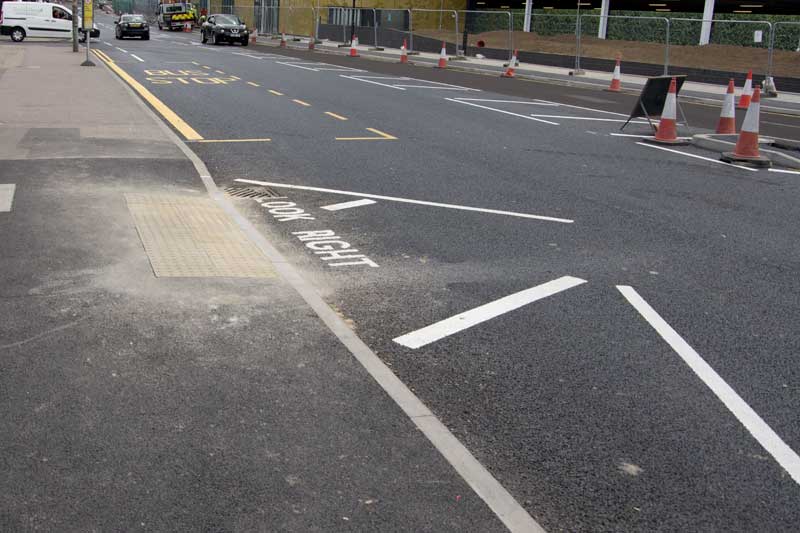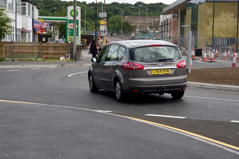 pedestrian crossing due soon, pulling out from Lensbury Way (to left of Photos 1 to 3 ) is not going