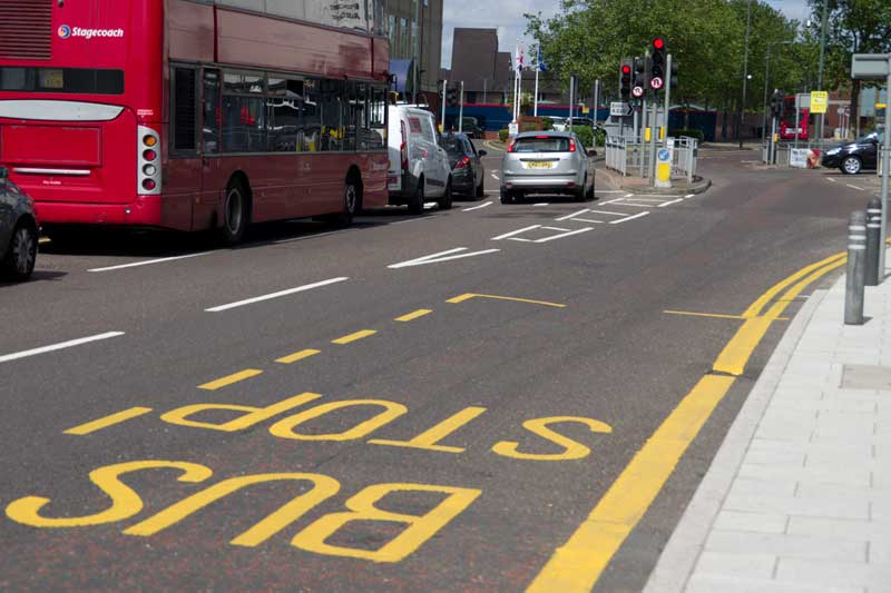 It would appear that the new bus stop markings in Harrow Manorway, Abbey Wood,