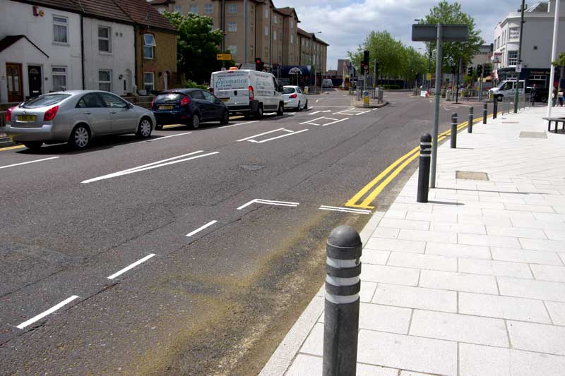 When traffic is queued to turn right into Erith Road and cars are occupying the new bays, large vehicles