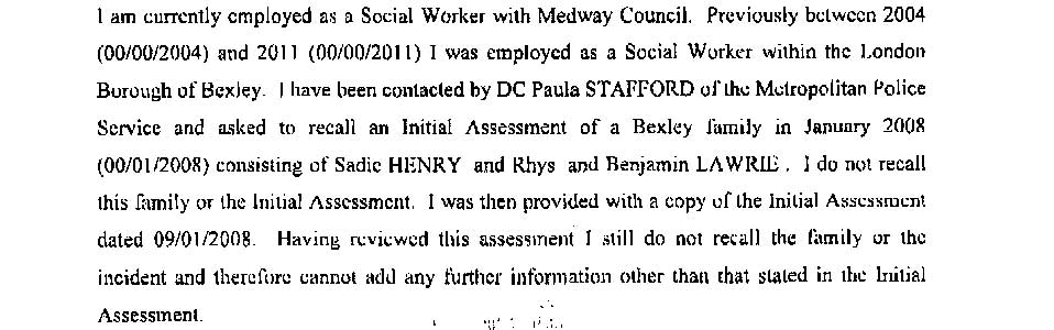 below is one not previously published. The police discovered a reference to an Initial Assessment among Bexley’s