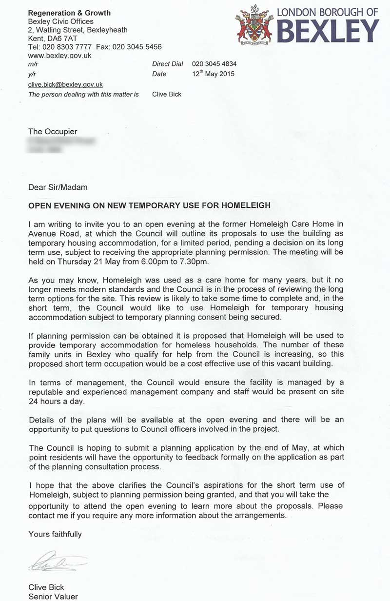 help the residents of Avenue Road”. I am influenced by the fact that Bexley council