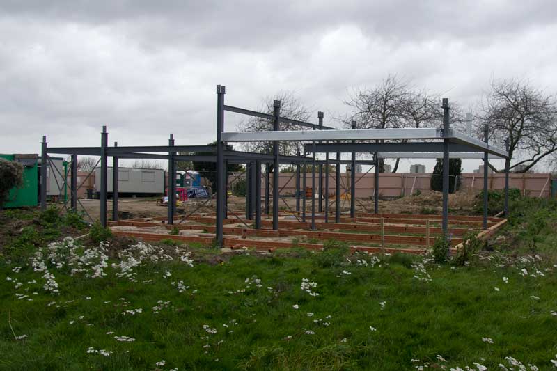 Only six months late the kit of parts that should make up into a visitor centre has arrived at Lesnes Abbey.
