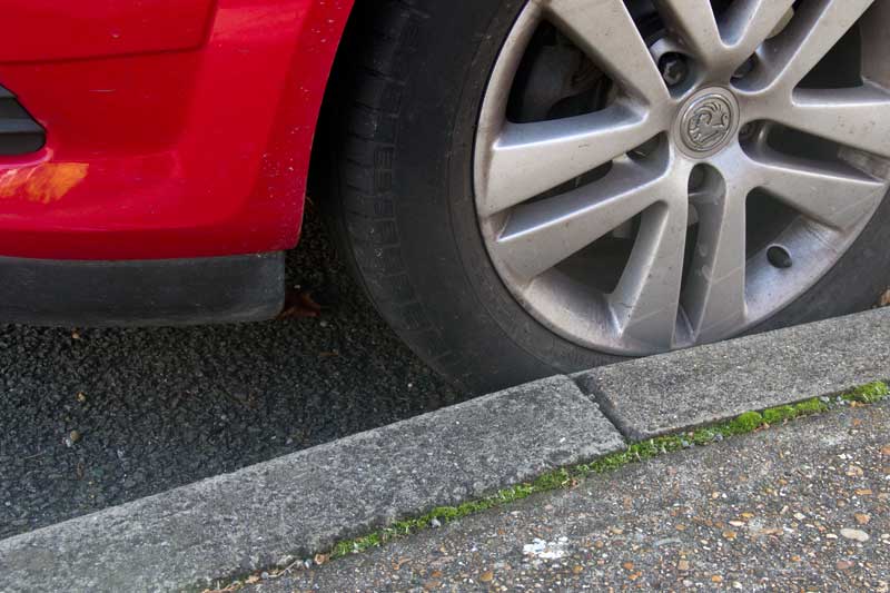 wasn’t penalized at parking bays, it was the wheels that counted. I wondered how that might apply to drop down kerbs.