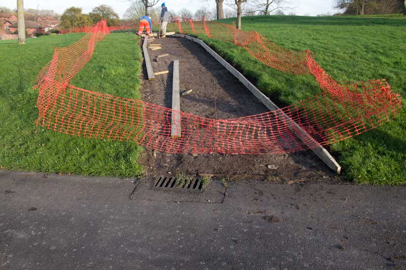 Heritage Lottery Fund. The new path scars the landscape, rocks are stockpiled