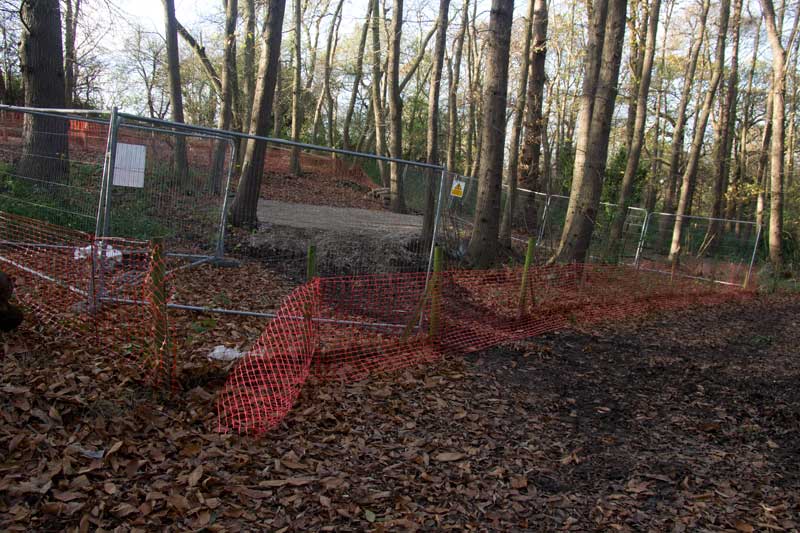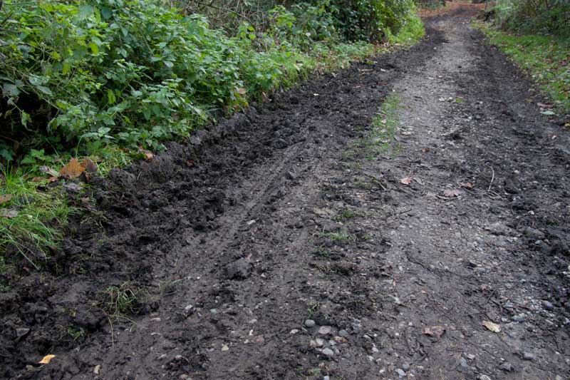 into an easily accessible compound. The woodland paths are churned into bogs and