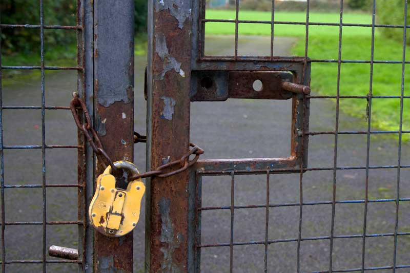 gardens. There is no legitimate access point, she said, as the spiked fences and padlock suggest.