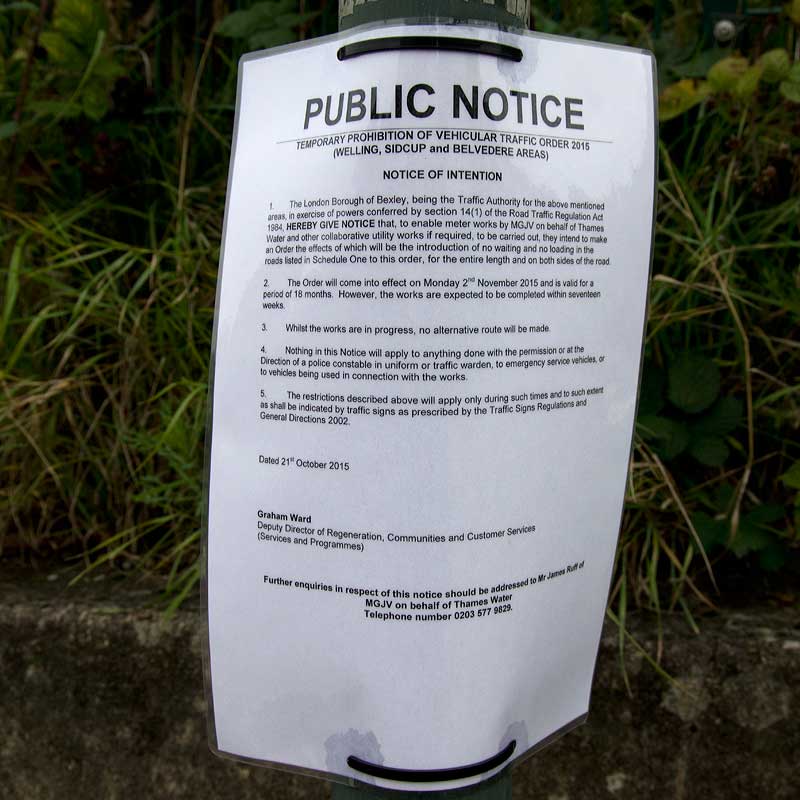 That Notice is on display in Elstree Gardens, Belvedere which is not an