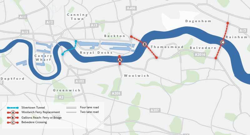 and bridges at Gallions Reach and Belvedere, and restoring the Woolwich Free Ferry to its former glory.