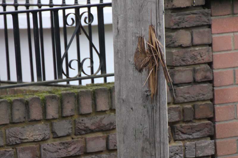 Photographs supplied by Elwyn Bryant. The telegraph pole is in a silly position and is suffering as a result.