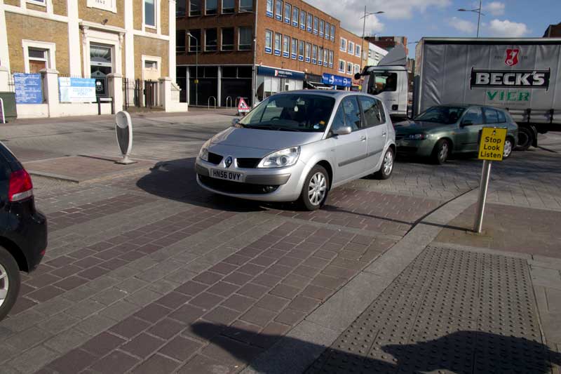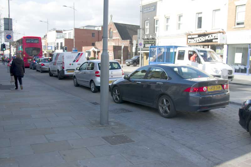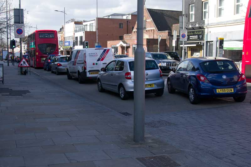 The zebra crossing under the railway bridge was closed and people dodged across the road between queuing traffic