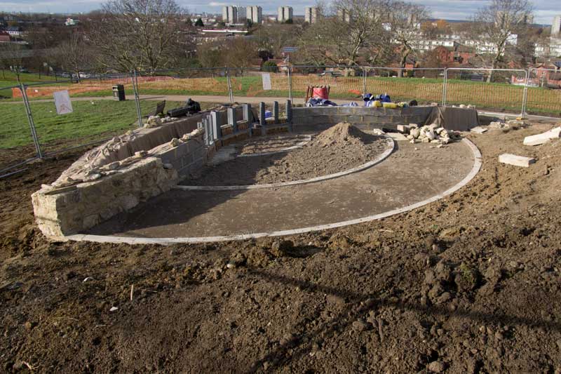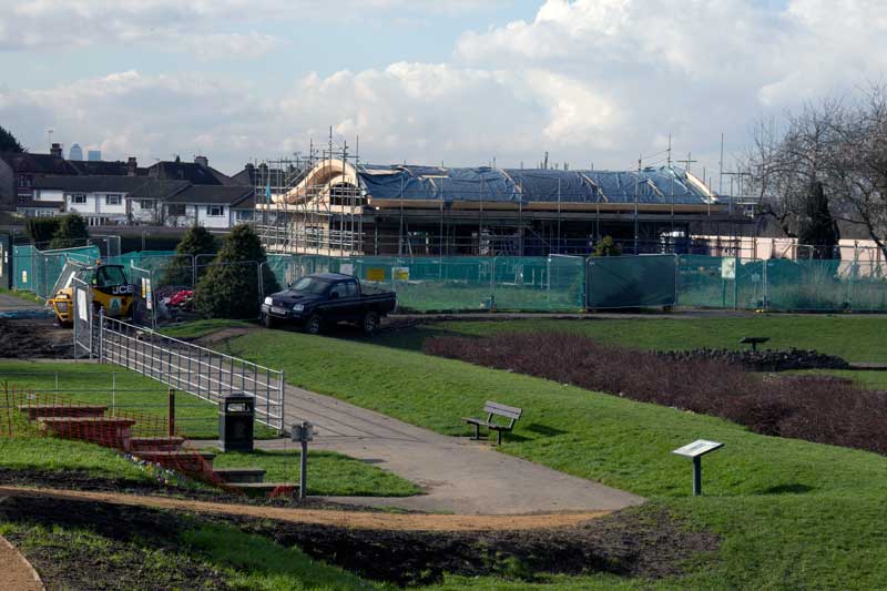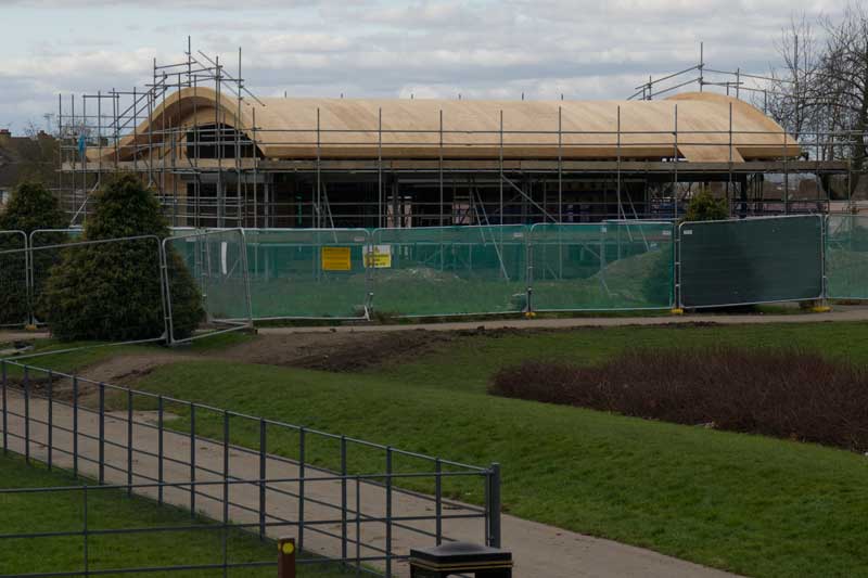Since last week the metal fences have been painted battleship grey and the plastic sheet has been removed from the Visitor Centre’s roof.