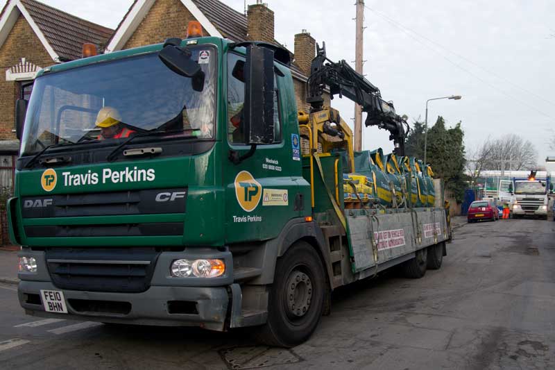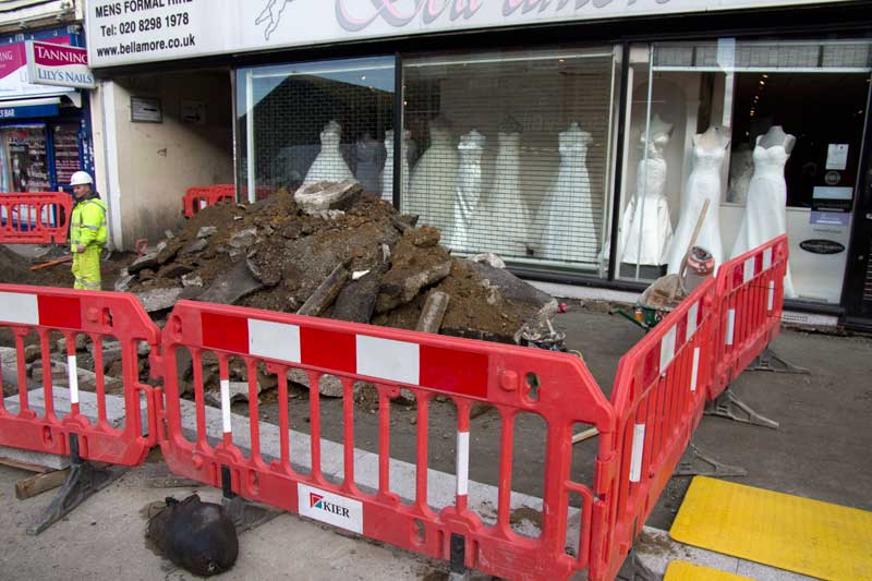 Harrow Manorway. None are working on the eastern side and at least three are out across the road, leaving