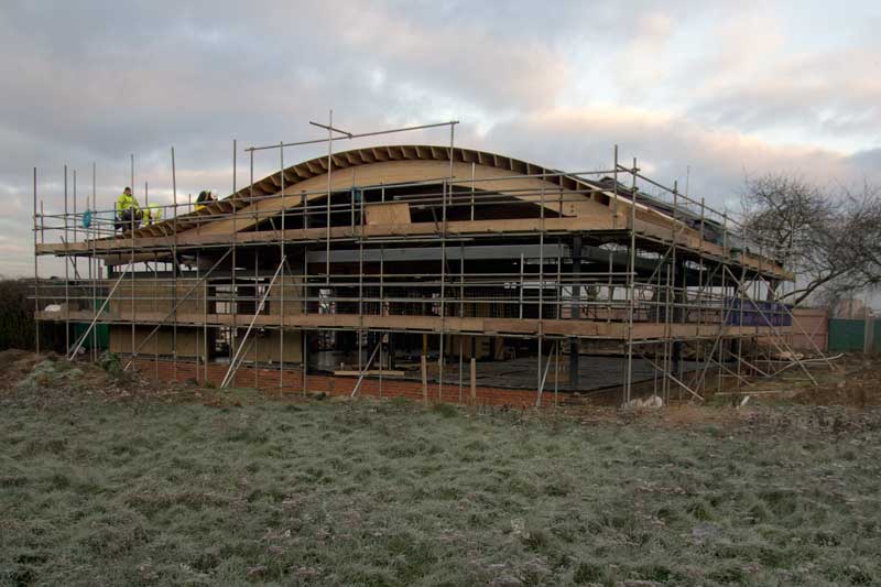 into the ground, not quite finished building the first station wall and seen