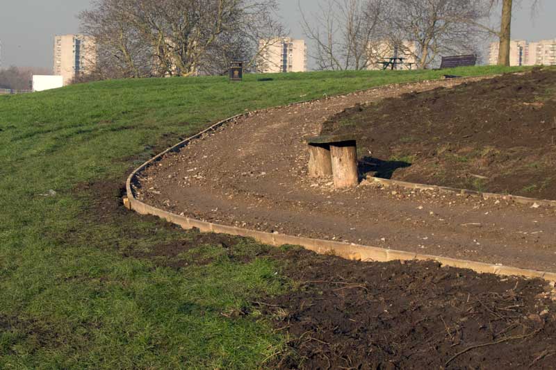 Embankment which has done absolutely nothing to improve traffic flow and is