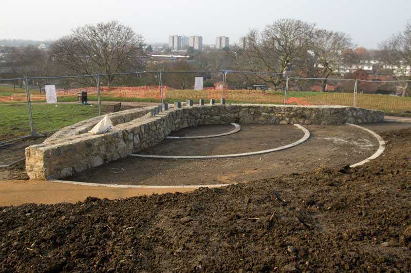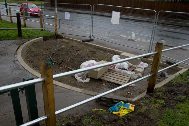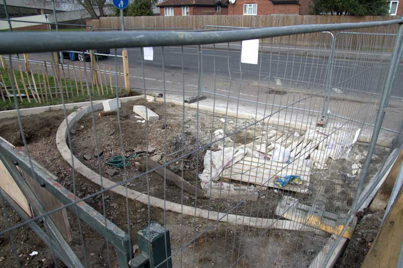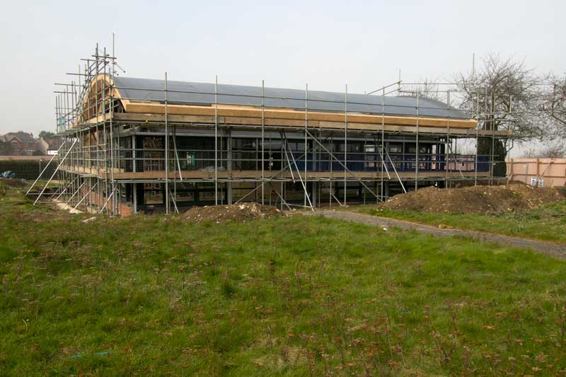 see or photograph over the high wooden fence. It looks as though the roof is nearing completion too.