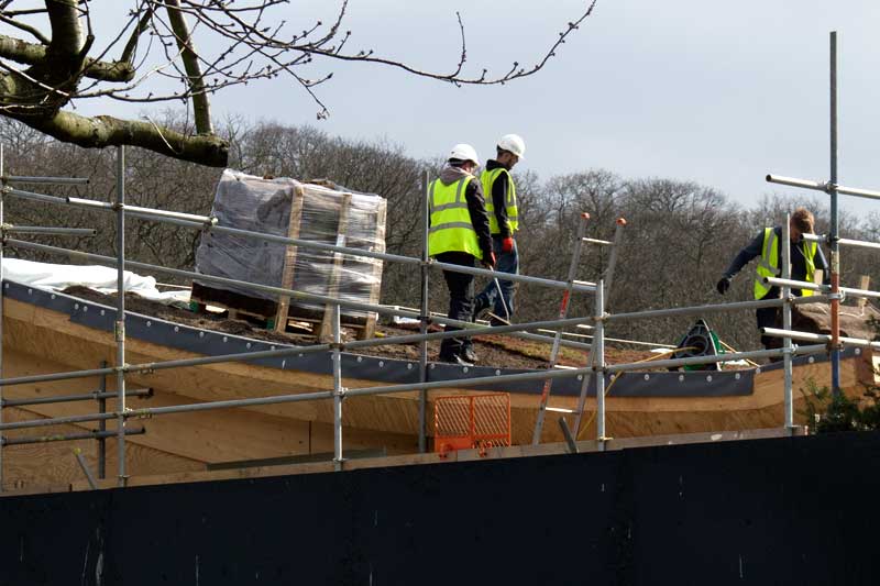 a start has been made on the soil and moss roof of the Visitor Centre. It will