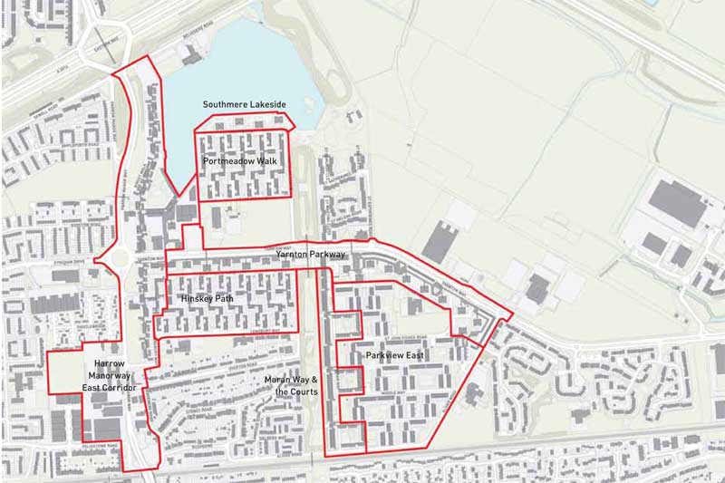plans for the area that stretches from Southmere Lake down to that railway line.
