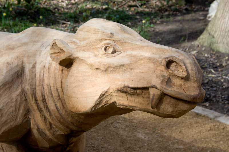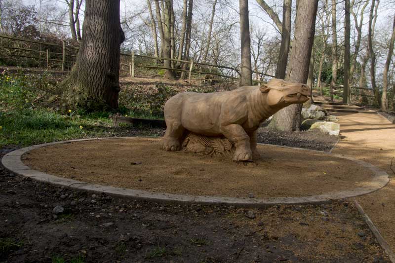Hidden in the woods next to the fossil bed is a wooden carving of some