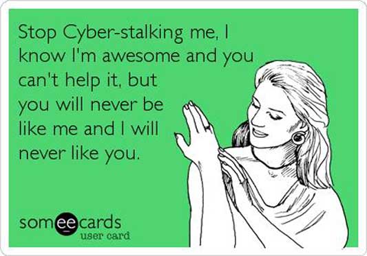 comments about stalking. Why? Losing it if you ask me. If she is being cyber