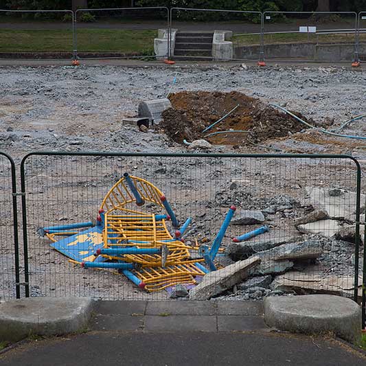 the paving laid in 2014 has been dug up again. No pictures unfortunately. I