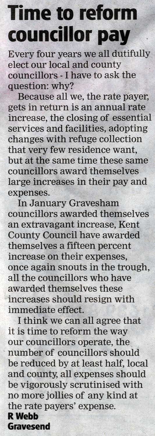 On it was a letter about Gravesham Council and as I read it I found myself thinking, thank goodness Bexley Council