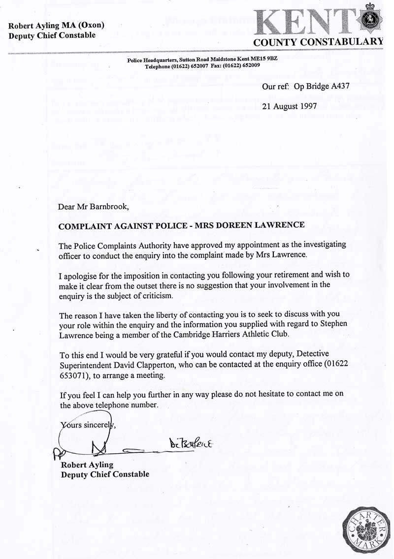 For the record, Mick Barnbrook was sports mentor to Stephen Lawrence and made a statement in