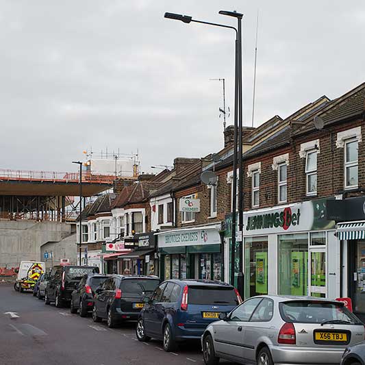 Across the road in Bexley new columns more appropriate to the A2 than a village have been installed.