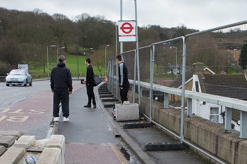 averse to hopping over the railings to the footpath beneath to save a few seconds walk.