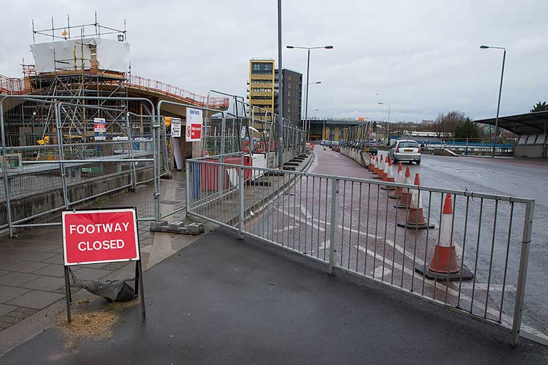 While approaching the temporary bus stop on Harrow Manor Way flyover, I tripped over the concrete footings which are propping up a
