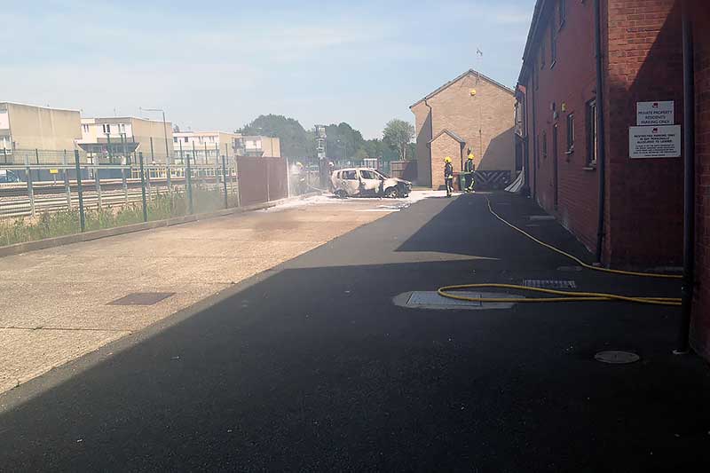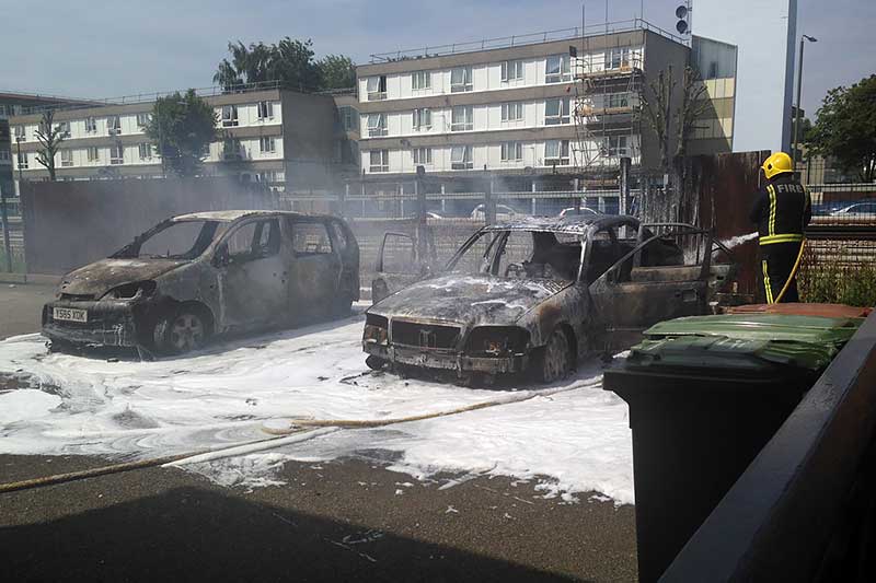 I was almost right, a few doors along two cars had been burned out. just after 2 p.m. assuming the image EXIF data is correct.