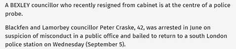 Service which confirm that Councillor Peter Craske was arrested and charges were being considered.